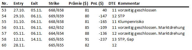 Zudem wurde sichtbar, dass eine hohe Strike-Konzentration die Verlustwahrscheinlichkeit erhöht. Die konsequente Streuung der Short-Strikes wird ab Dezember zum strukturellen Bestandteil des Risikomanagements.